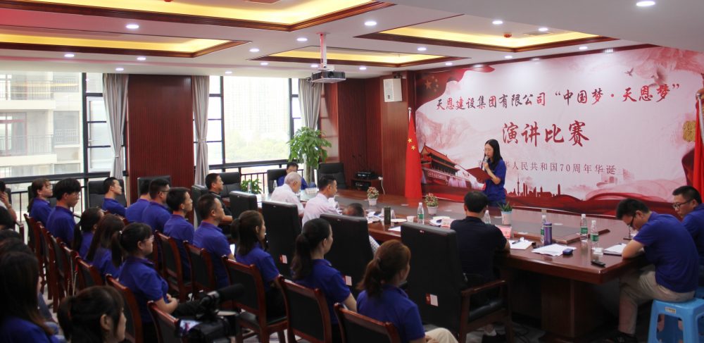 9月27日下午,天恩建設集團有限公司舉辦了“中國夢·天恩夢”主題演講比賽。本次活動旨在慶祝中華人民共和國70周年華誕,唱響愛國主旋律,培植理想信念,深耕企業文化,展現天恩風采。特邀潛江市資深專家、學者擔任評委,公司領導和全體員工參與了此次活動。